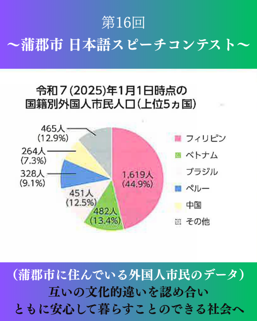 11/9(日)「第16回蒲郡市日本語スピーチコンテスト」が蒲郡市民体育館で開催されました。
