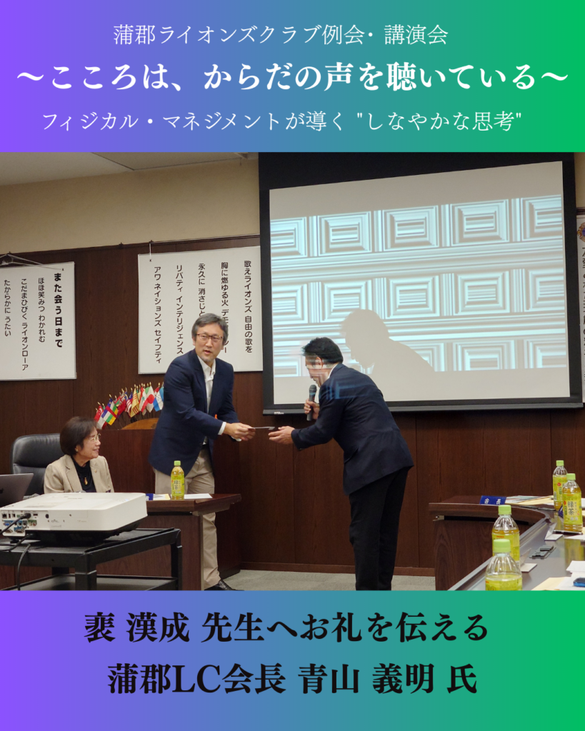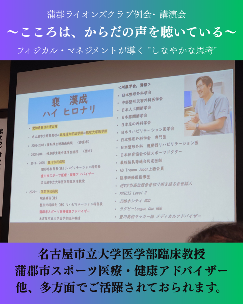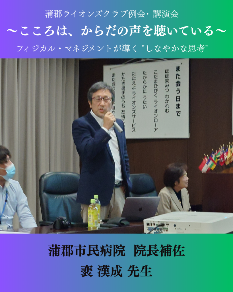 蒲郡市民病院 院長補佐「裵 漢成(はい ひろなり)」氏の講演を拝聴~こころは、からだの声を聞いている~【奉仕活動】