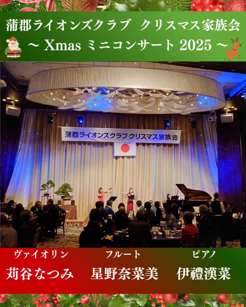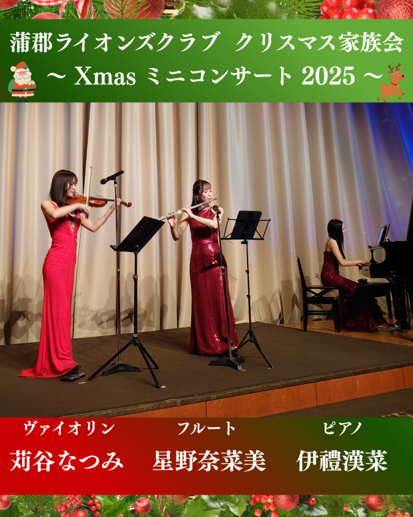 蒲郡ライオンズクラブのクリスマス家族会にて素敵な奏者3名様をお招きしました。