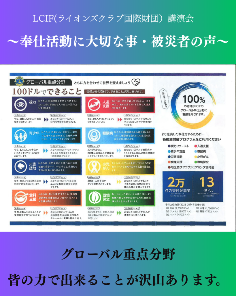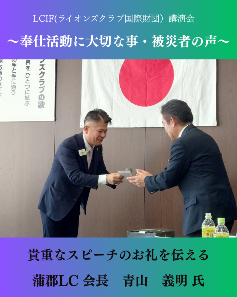 LCIFコーディネーター原口秀樹氏の講演を拝聴~奉仕活動に大切な事・被災者の声~【奉仕活動】
